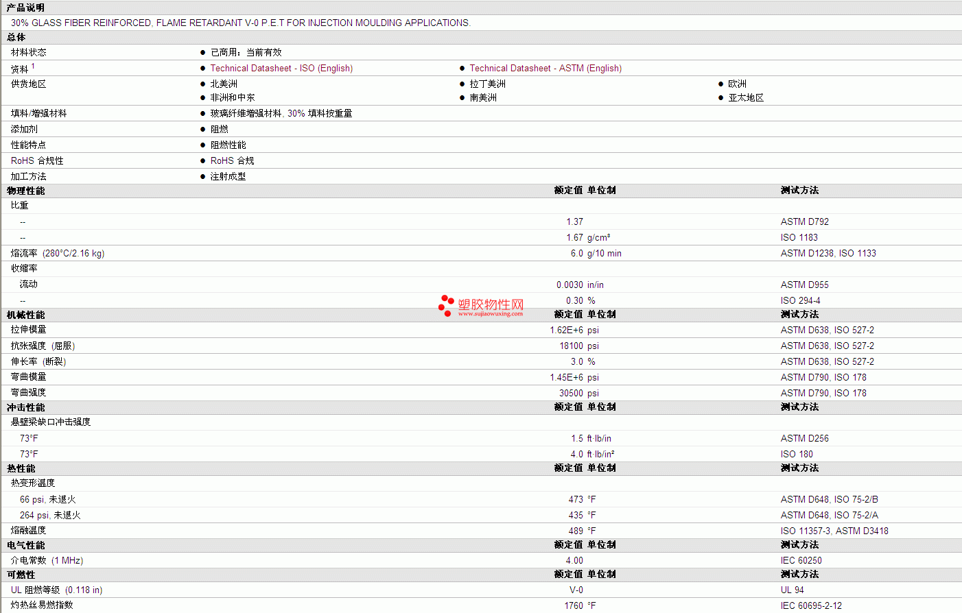 其他工程塑料物性表