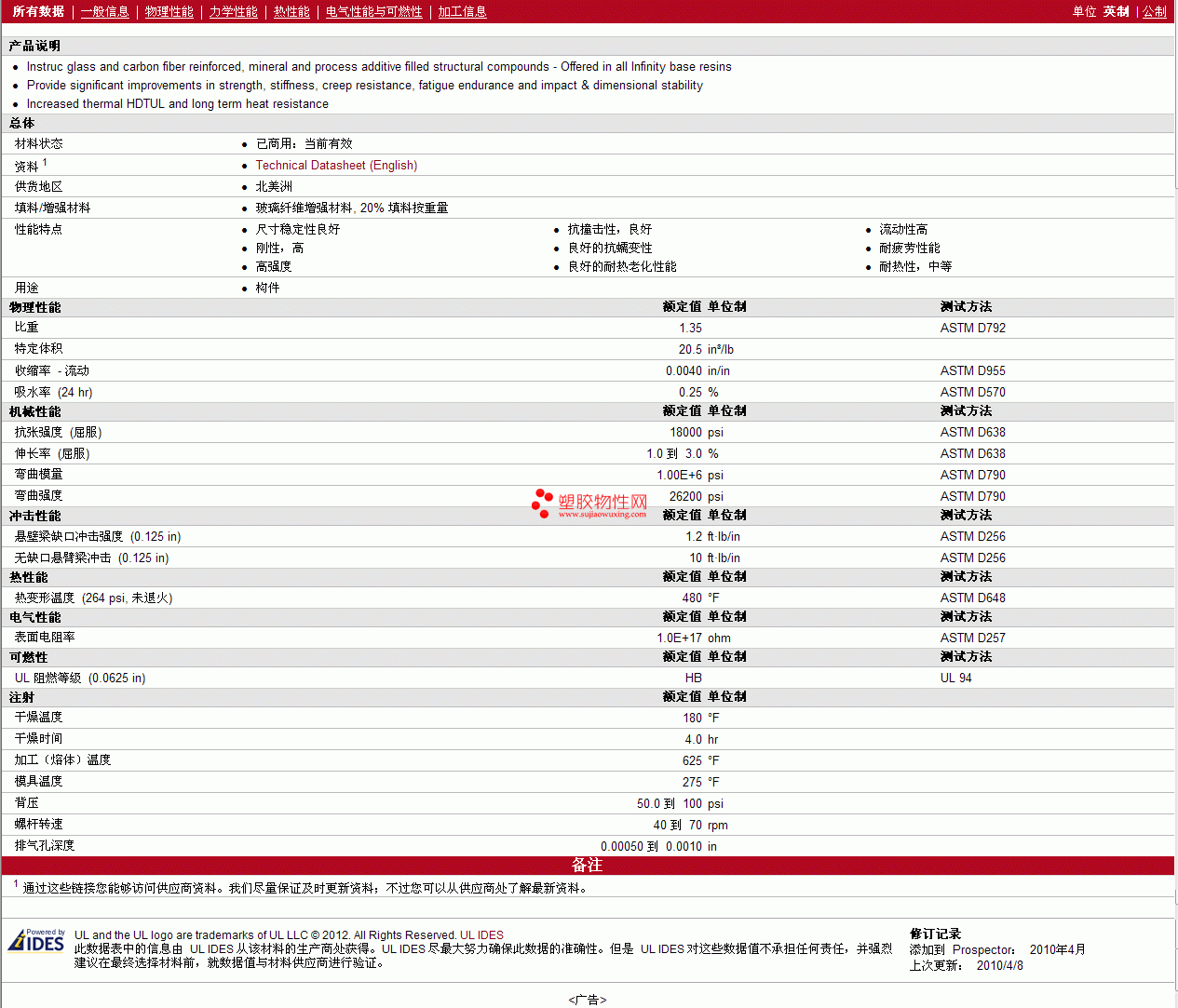 更多INSTRUC PPAGF20 物性表图片,报价、物质安全资料表(MSDS)、材质证明、UL黄卡等,最新行情报价等可来电咨询赵先生:13424755533 或QQ:27660005