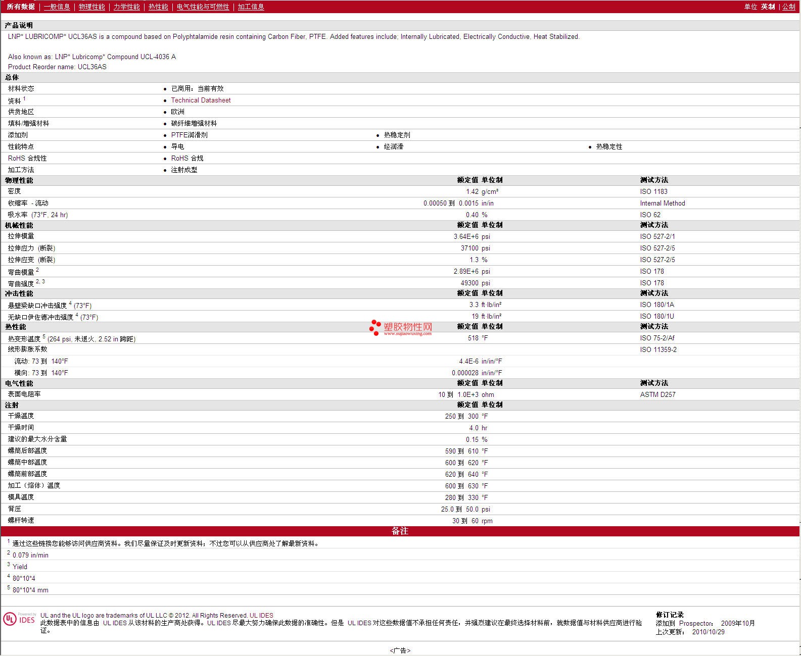 需了解LNP Lubricomp PPA UCL36AS 物性表更多详情,材质证明、ROHS(SGS)报告、物质安全资料表(MSDS)、UL黄卡等,最新行情报价等可来电咨询:赵先生:13424755533或QQ: 27660005