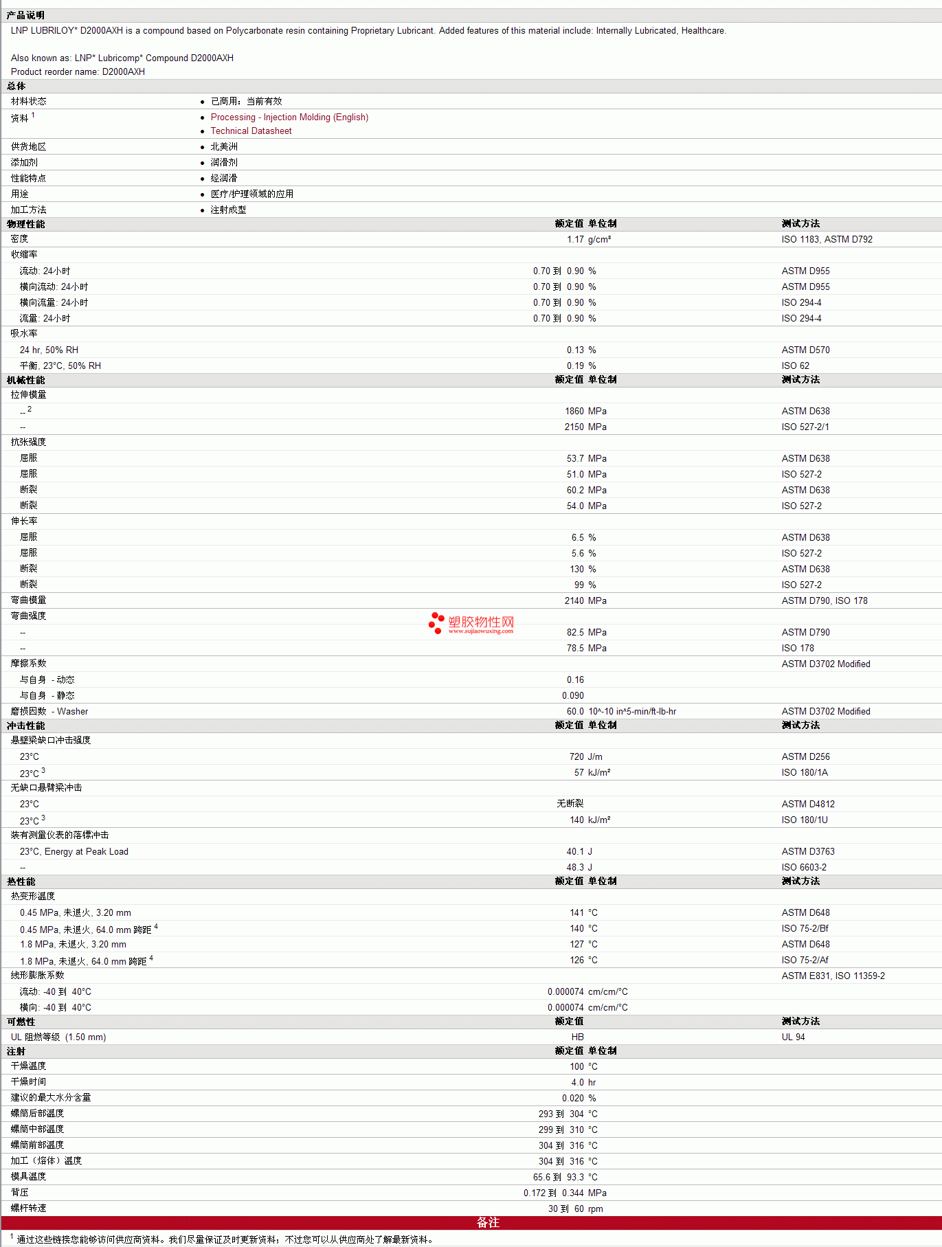 LNP pc Lubriloy D2000AXH物性表 见图片