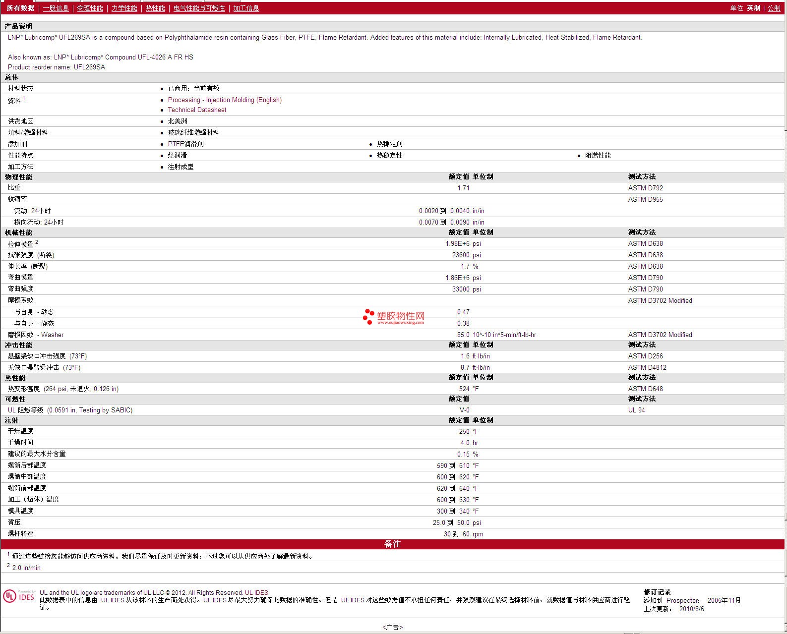 LNP Lubricomp PPA UFL269SA 详细情况如图