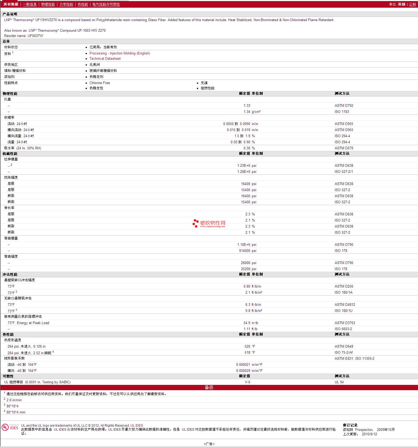 更多 LNP Thermocomp PPA UF0037W 物性表图片,报价、物质安全资料表(MSDS)、材质证明、UL黄卡等,最新行情报价等可来电咨询赵先生:13424755533或QQ: 27660005
