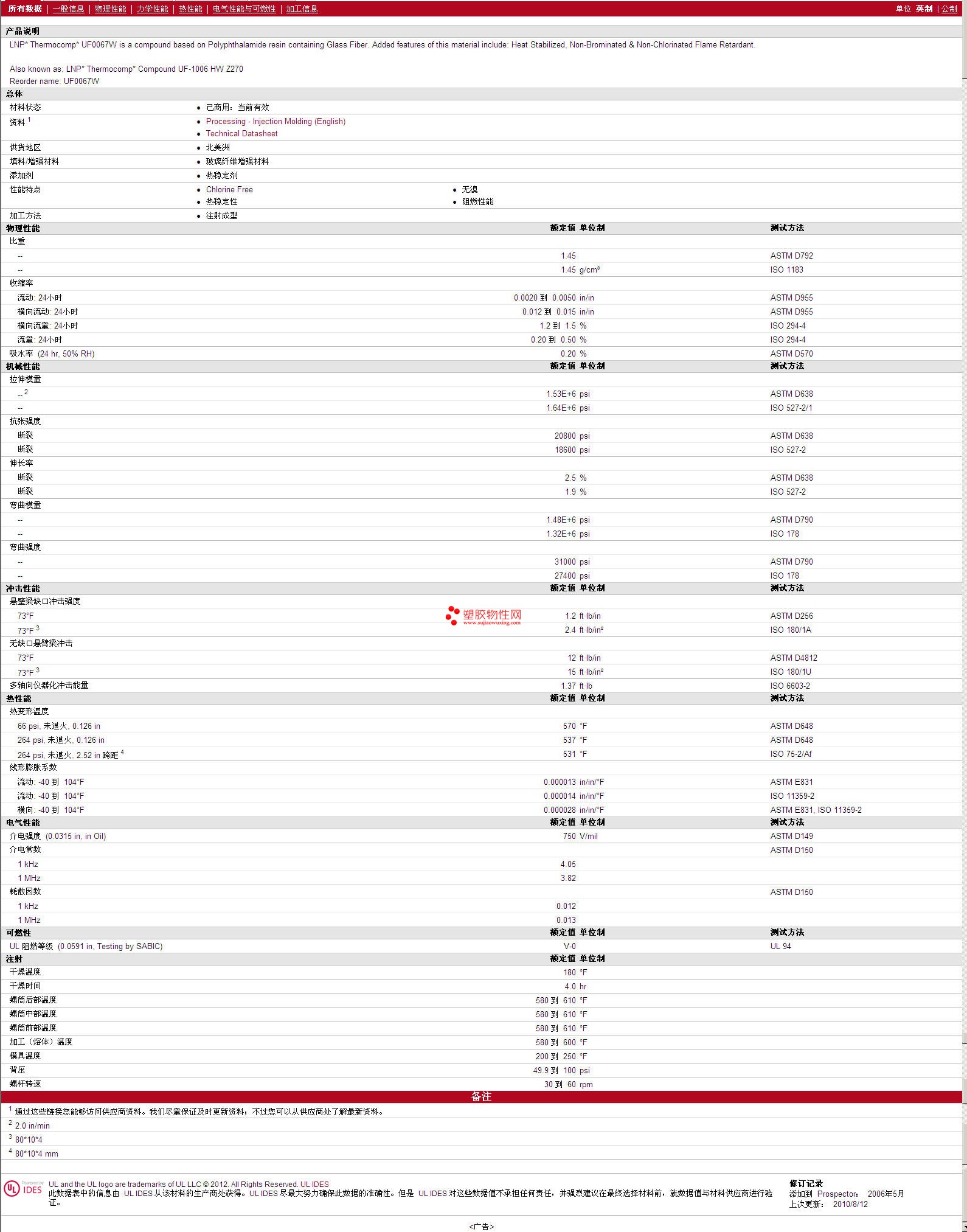 更多LNP Thermocomp PPA UF0067W 物性表图片,报价、物质安全资料表(MSDS)、材质证明、UL黄卡等,最新行情报价等可来电咨询赵先生:13424755533或QQ: 27660005