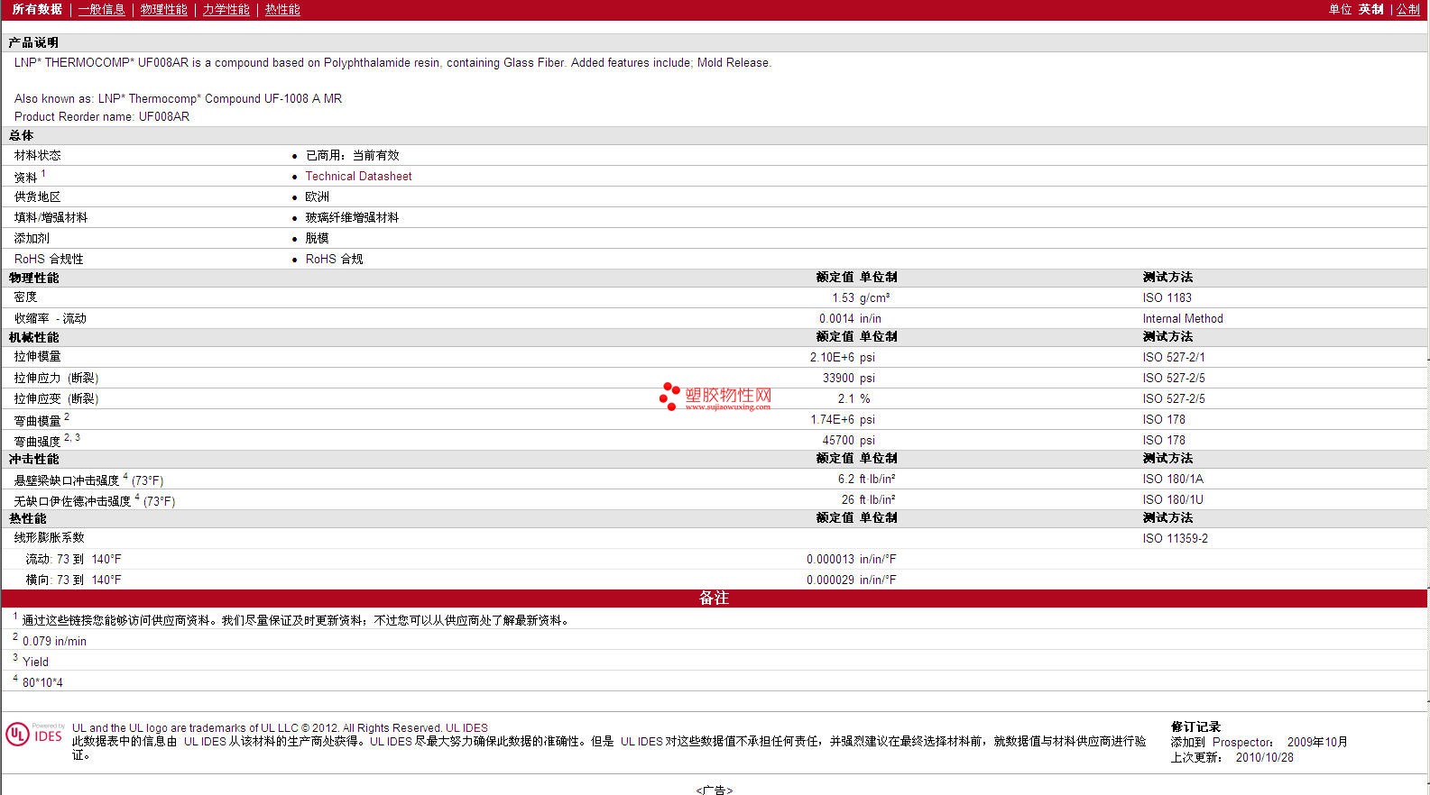 更多LNP Thermocomp PPA UF008AR 物性表报价,图片、材质证明、UL黄卡、物质安全资料表(MSDS)等可来电咨询赵先生:13424755533或QQ: 27660005