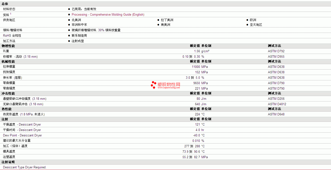 | 收缩率 - 流动 (3.18 mm) | 0.10 到 0.30 | % | ASTM D955 |