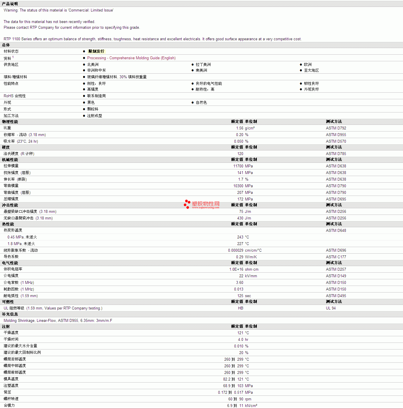 RTP Compounds PET 1105 物性表 详细情况如图