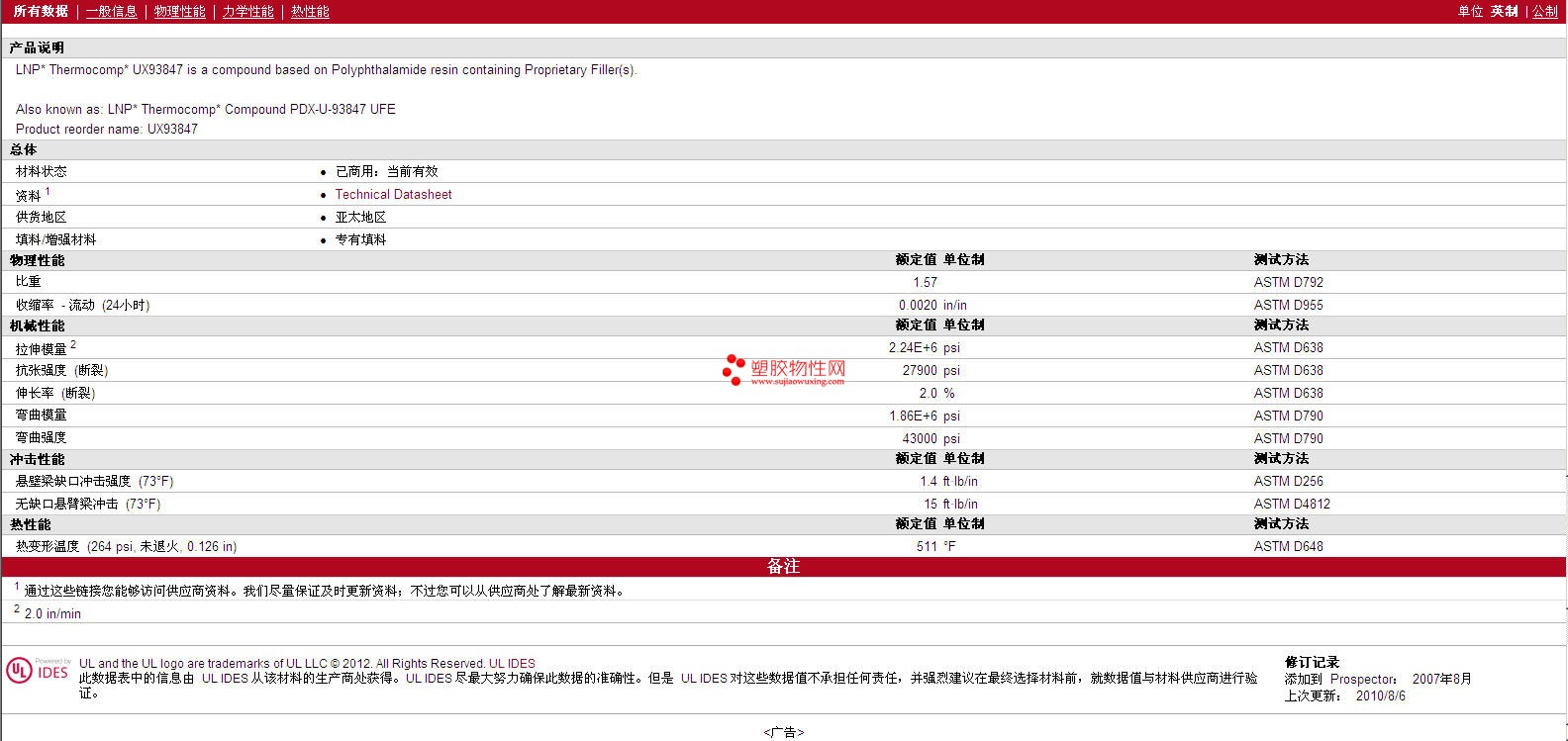 更多 LNP Thermocomp PPA UX93847 物性表图片,报价、物质安全资料表(MSDS)、材质证明、UL黄卡等,最新行情报价等可来电咨询赵先生:13424755533或QQ: 27660005