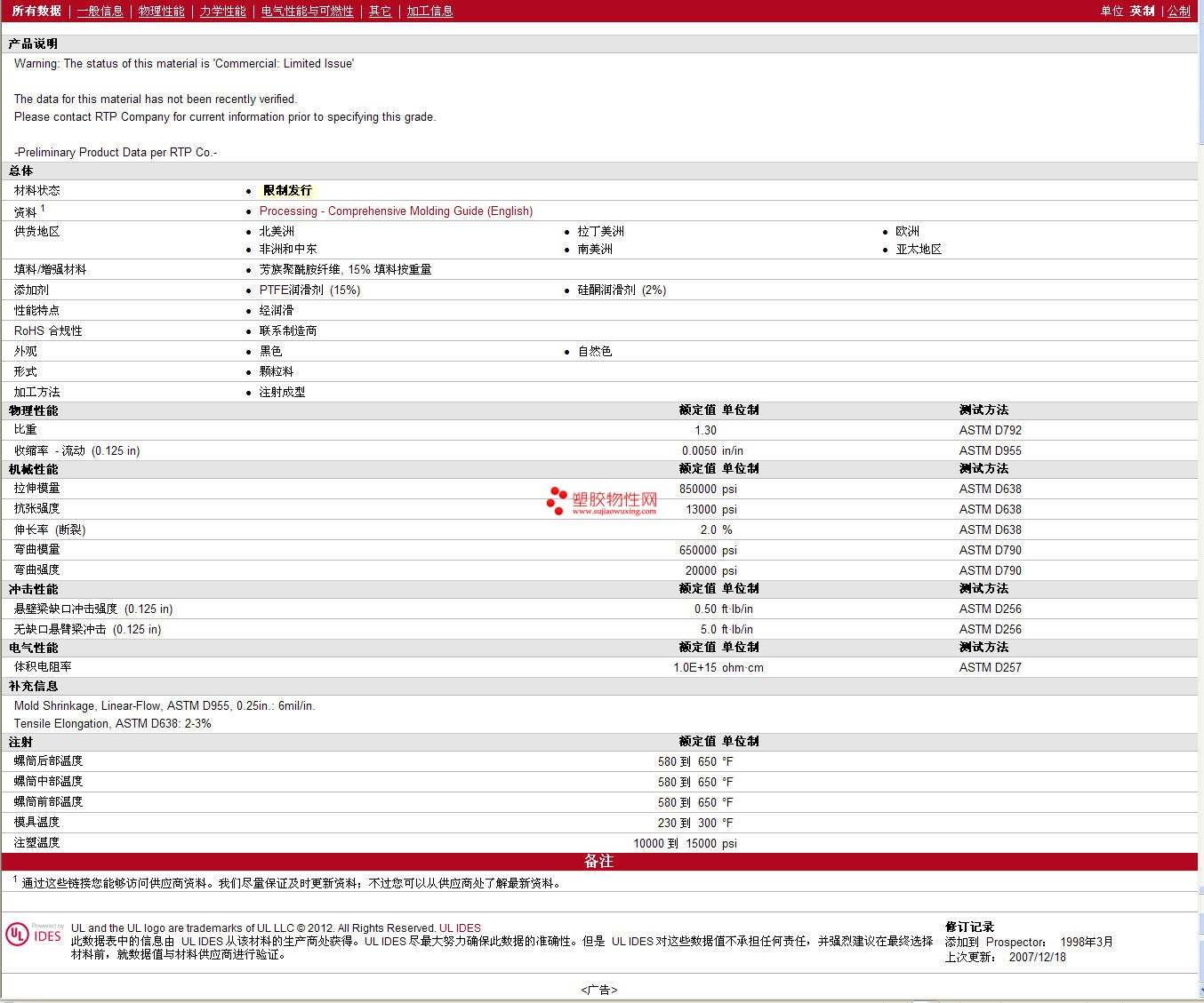 需了解RTP Compounds PPA 4000 A AR 15 TFE 15 SI 2物性表材质证明、ROHS(SGS)报告、物质安全资料表(MSDS)、UL黄卡等可来电咨询:赵先生:13424755533 或QQ:27660005