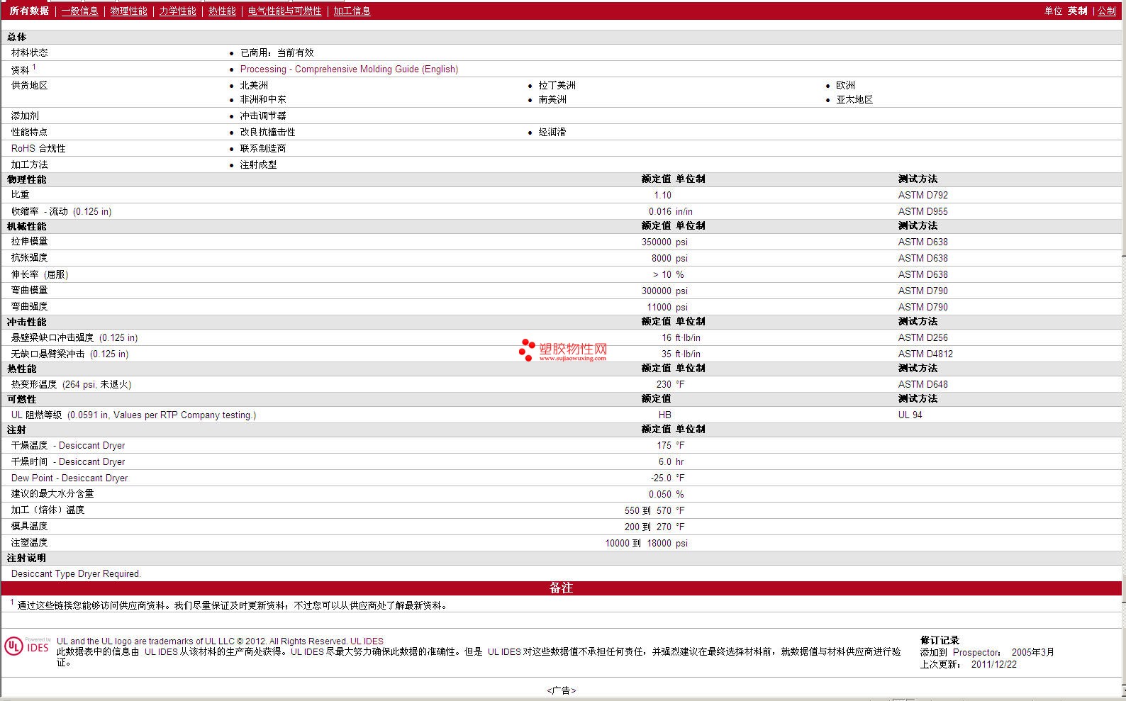 RTP Compounds PPA 4000 AT-1001 L 物性表