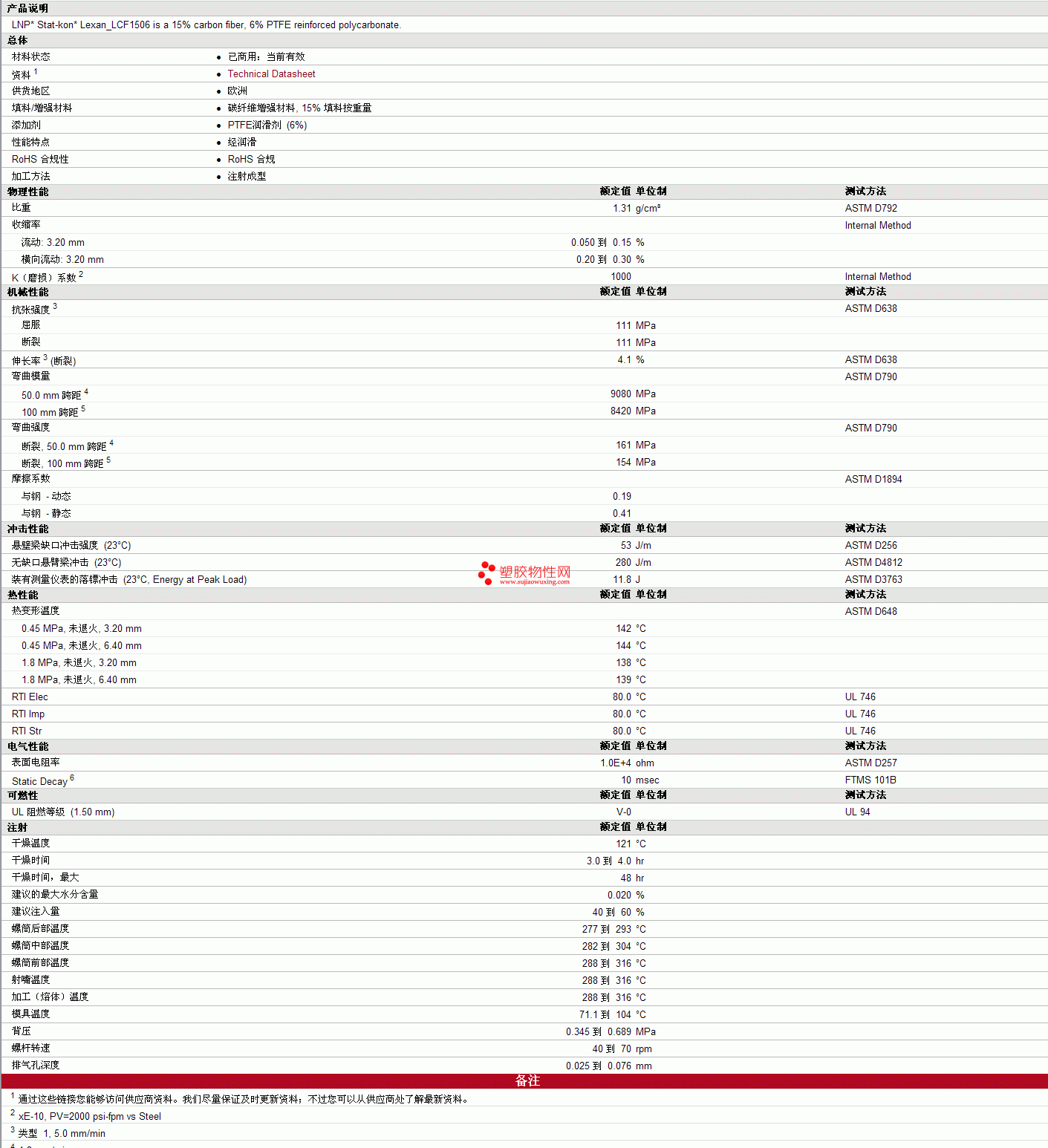LNP pc Stat-Kon Lexan_LCF1506物性表 见图片