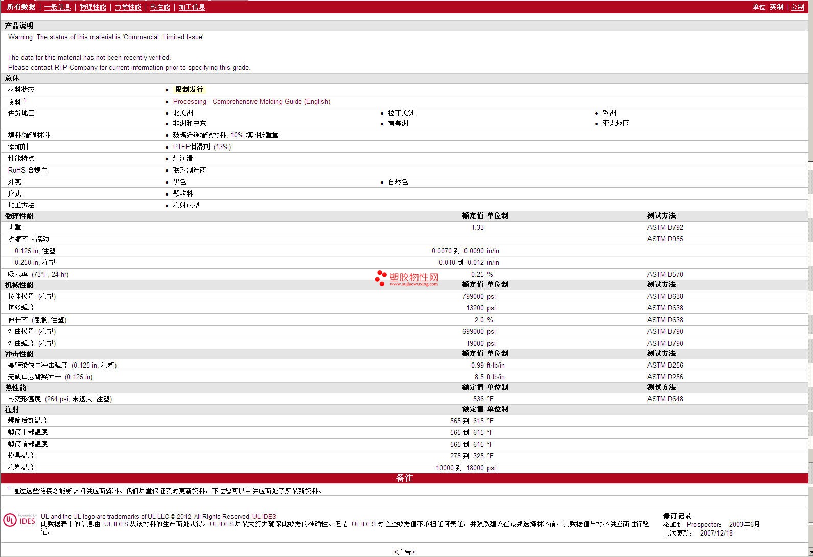 更多RTP Compounds PPA 4001 TFE 13 物性表报价,图片、材质证明、UL黄卡、物质安全资料表(MSDS)等可来电咨询赵先生:13424755533或QQ: 27660005