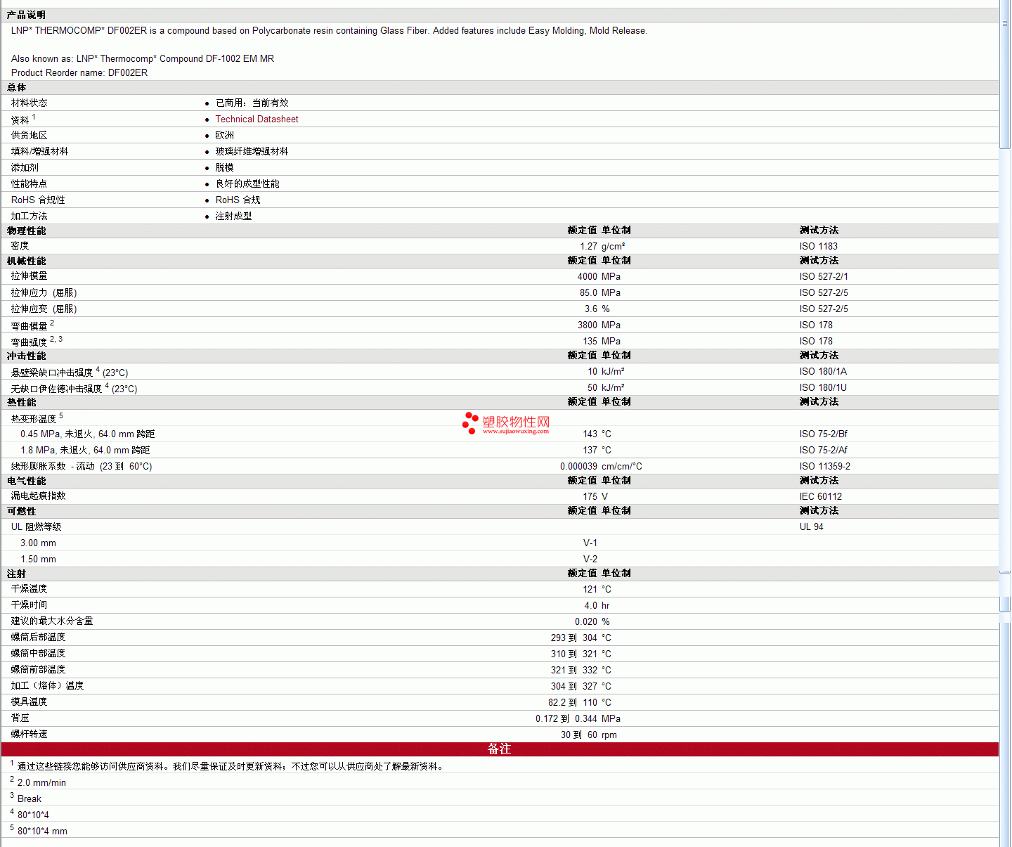 LNP pc Thermocomp DF002ER物性表 见图片