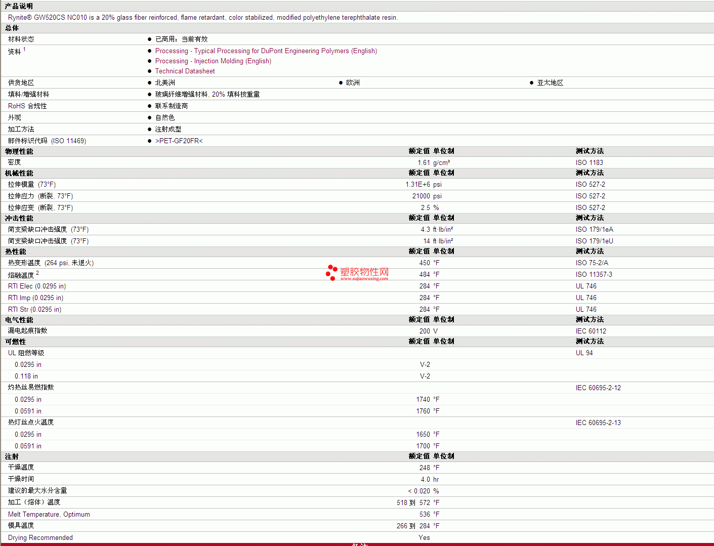 更多Rynite PET GW520CS NC010物性表图片,报价、物质安全资料表(MSDS)、材质证明、UL黄卡等,最新行情报价等可来电咨询赵先生:13424755533。或QQ:27660005