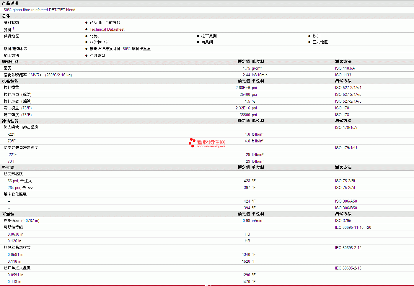 | 拉伸应力 (断裂) | 25400 | psi | ISO 527-2/1A/5 |
