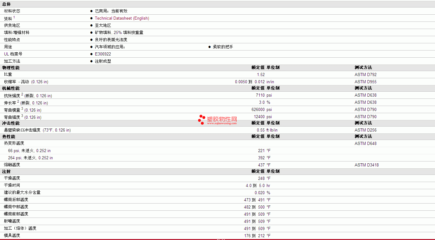 | 收缩率 - 流动 (0.126 in) | 0.0050 到 0.012 | in/in | ASTM D955 |