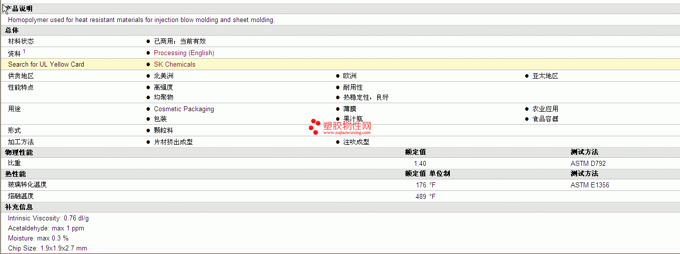 SKYPET PET BB 7755物性表 详情见附件