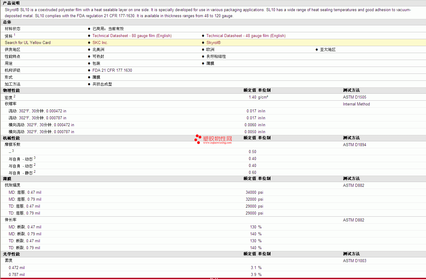 | 物理性能 | 额定值 | 单位制 | 测试方法 |
