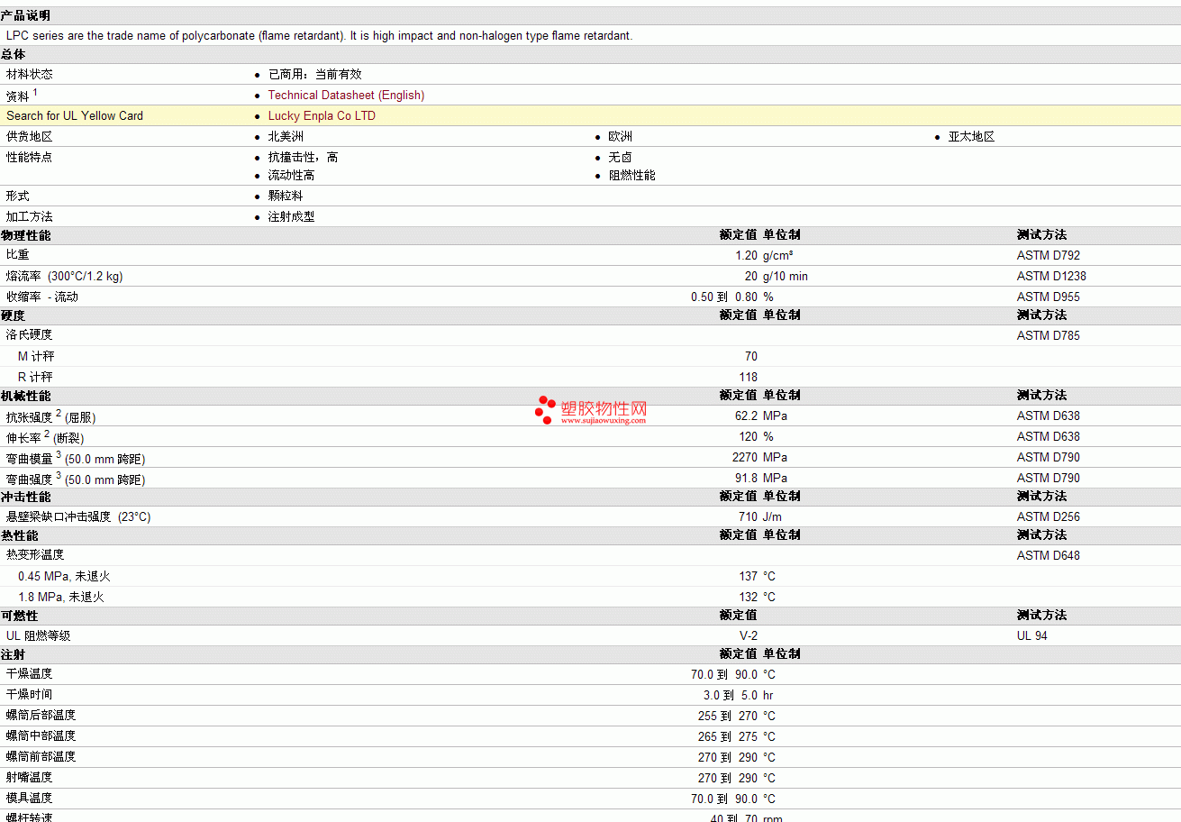 LPC pc Series LPC1000物性表见图片