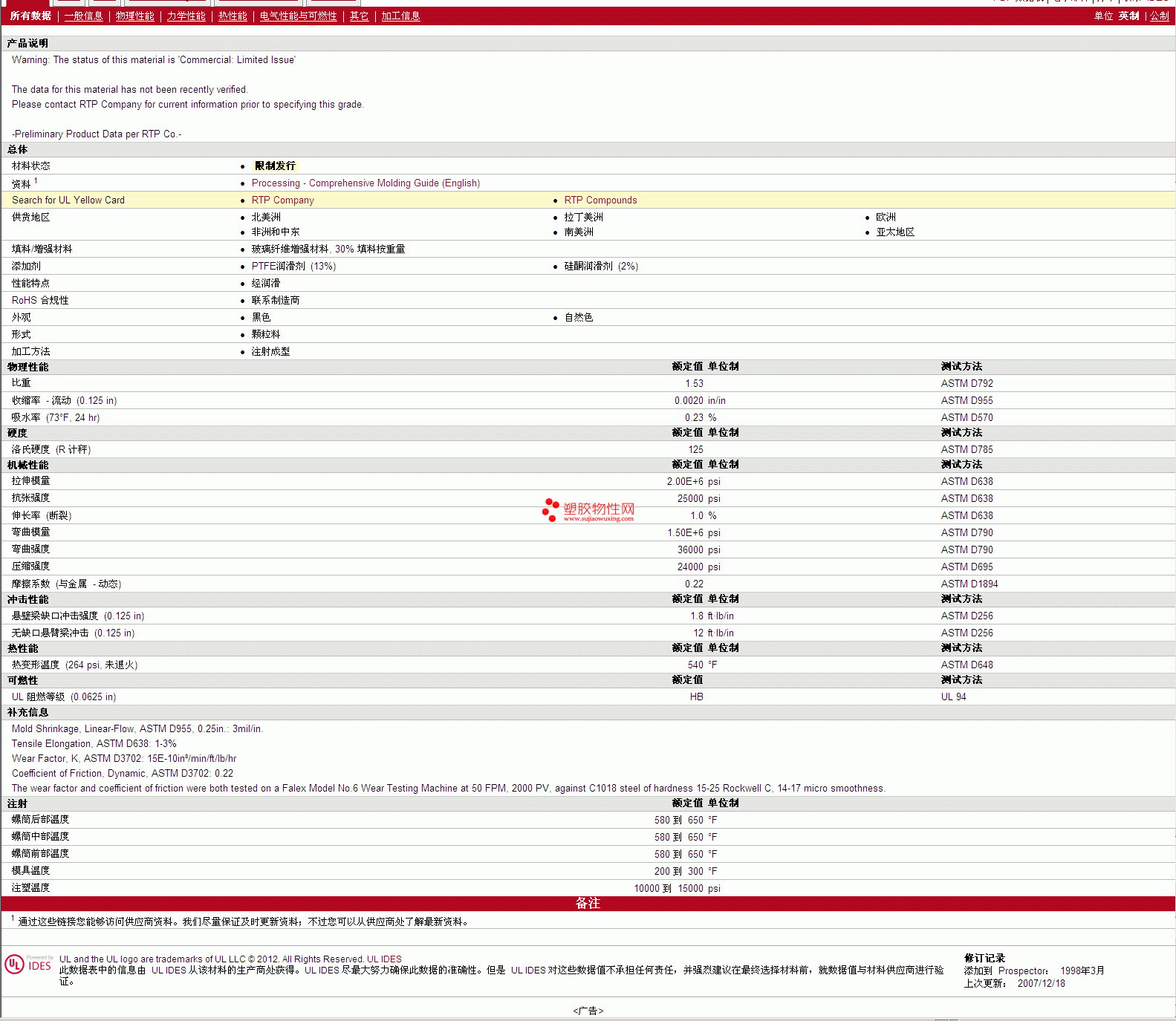 RTP Compounds PPA 4005 TFE 13 SI 2 详细情况如图
