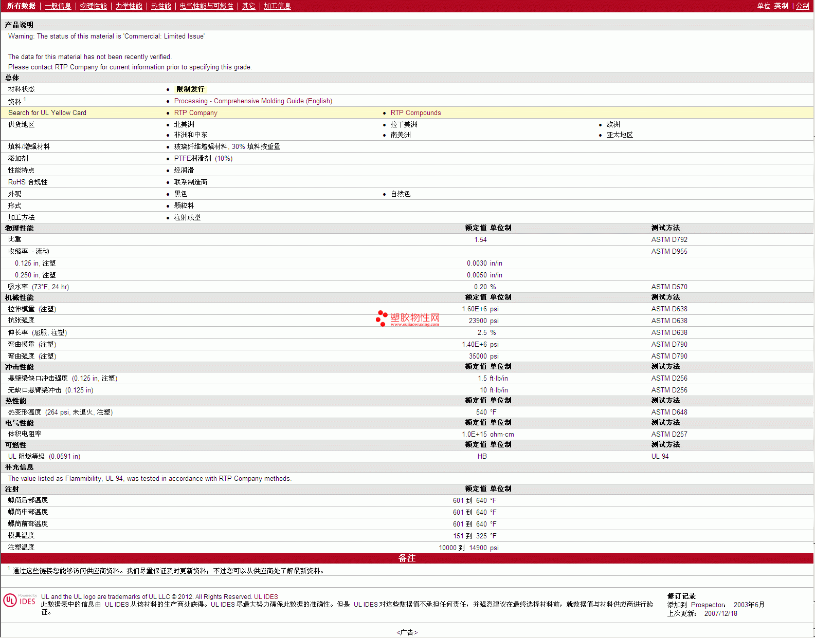 更多RTP Compounds PPA 4005A TFE 10 物性表图片,报价、物质安全资料表(MSDS)、材质证明、UL黄卡等,最新行情报价等可来电咨询赵先生:13424755533或QQ: 27660005
