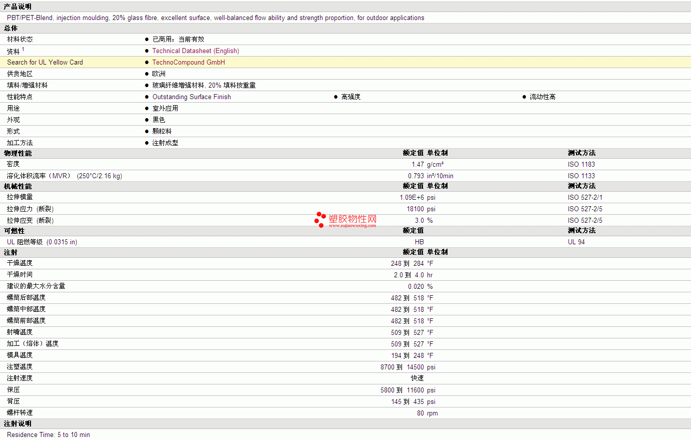 | 溶化体积流率(MVR) (250°C/2.16 kg) | 0.793 | in³/10min | ISO 1133 |
