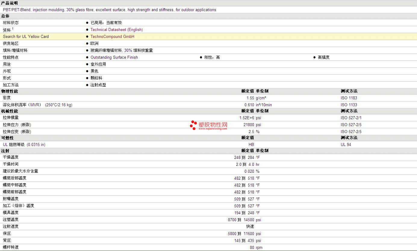 | 拉伸应变 (断裂) | 2.5 | % | ISO 527-2/5 |
