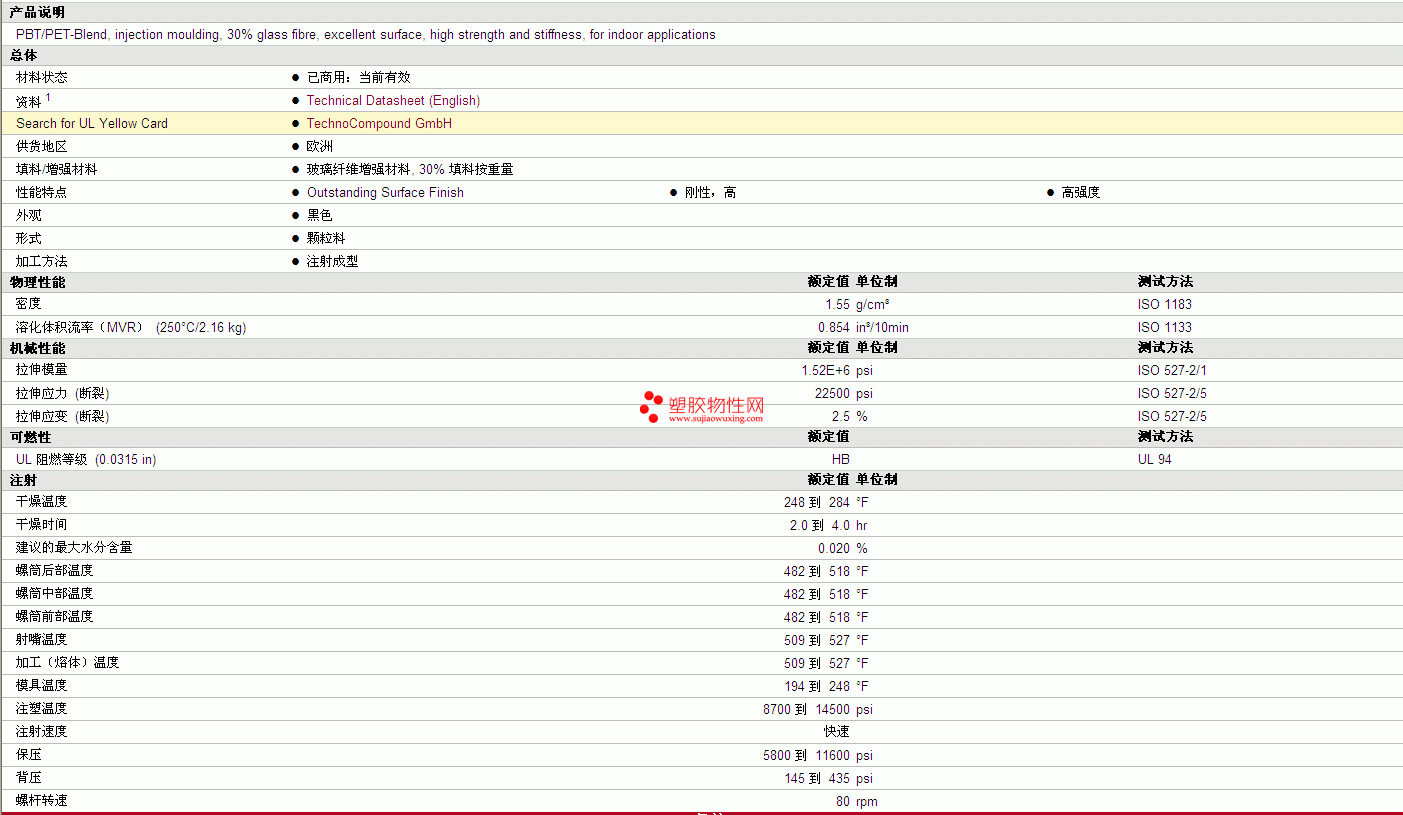 | 溶化体积流率(MVR) (250°C/2.16 kg) | 0.854 | in³/10min | ISO 1133 |