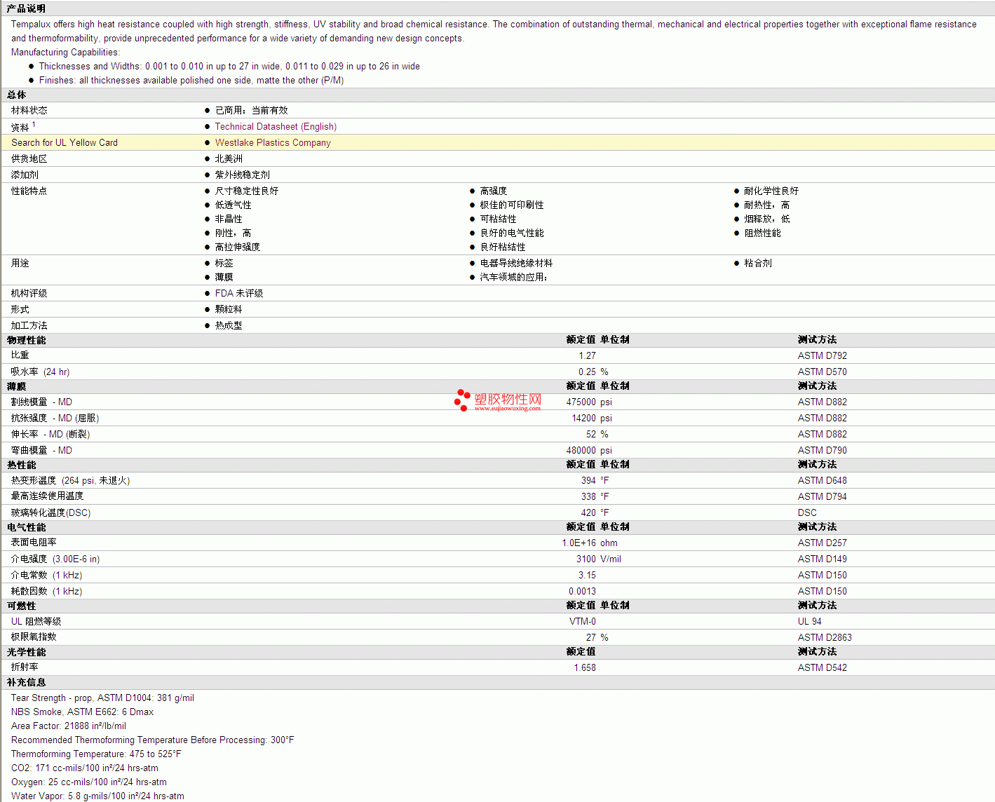 | 比重 | 1.27 | ASTM D792 | |