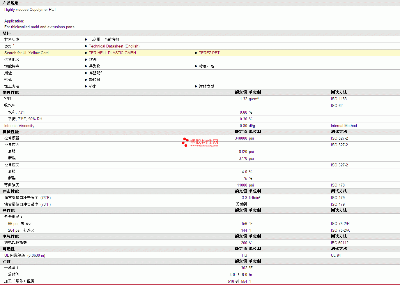 更多TEREZ PET 3200物性表报价,图片、材质证明、UL黄卡、物质安全资料表(MSDS)等,最新行情报价等可来电咨询赵先生:13424755533。或QQ:27660005