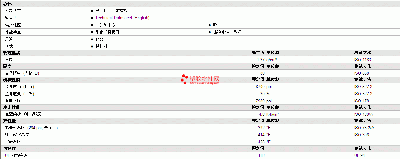 其他工程塑料物性表