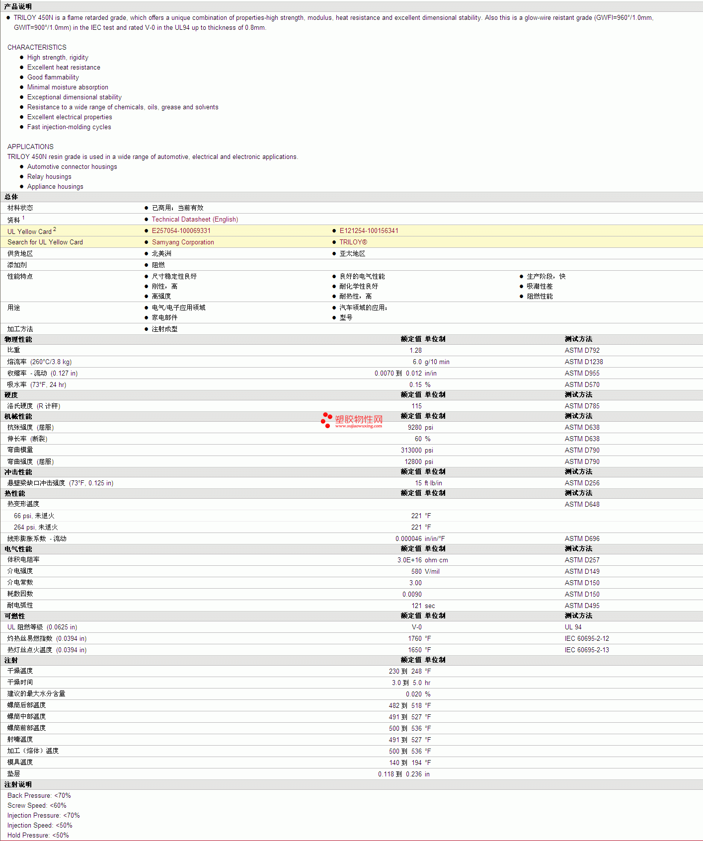 | 收缩率 - 流动 (0.127 in) | 0.0070 到 0.012 | in/in | ASTM D955 |