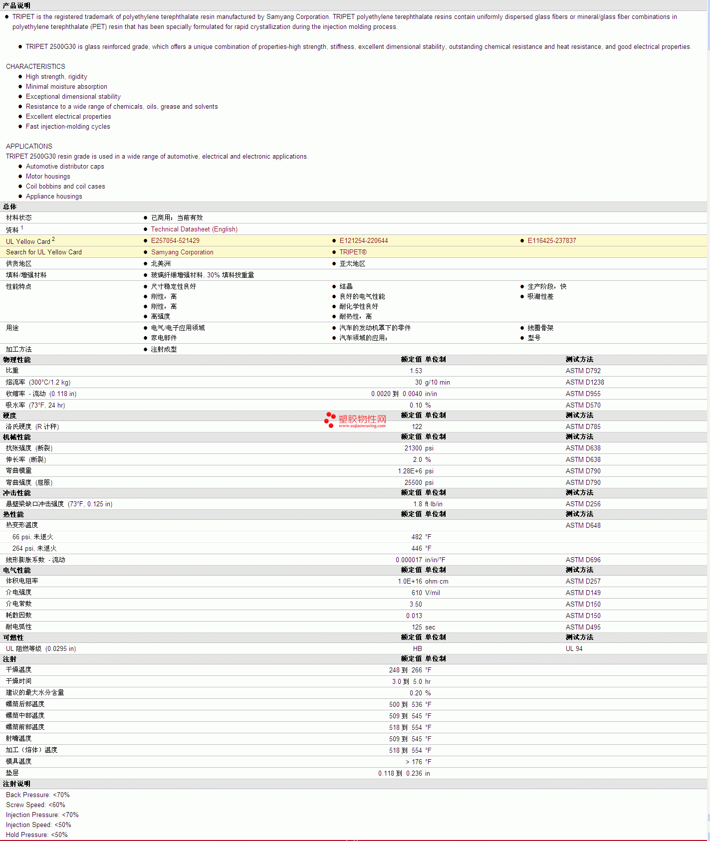 | 熔流率 (300°C/1.2 kg) | 30 | g/10 min | ASTM D1238 |