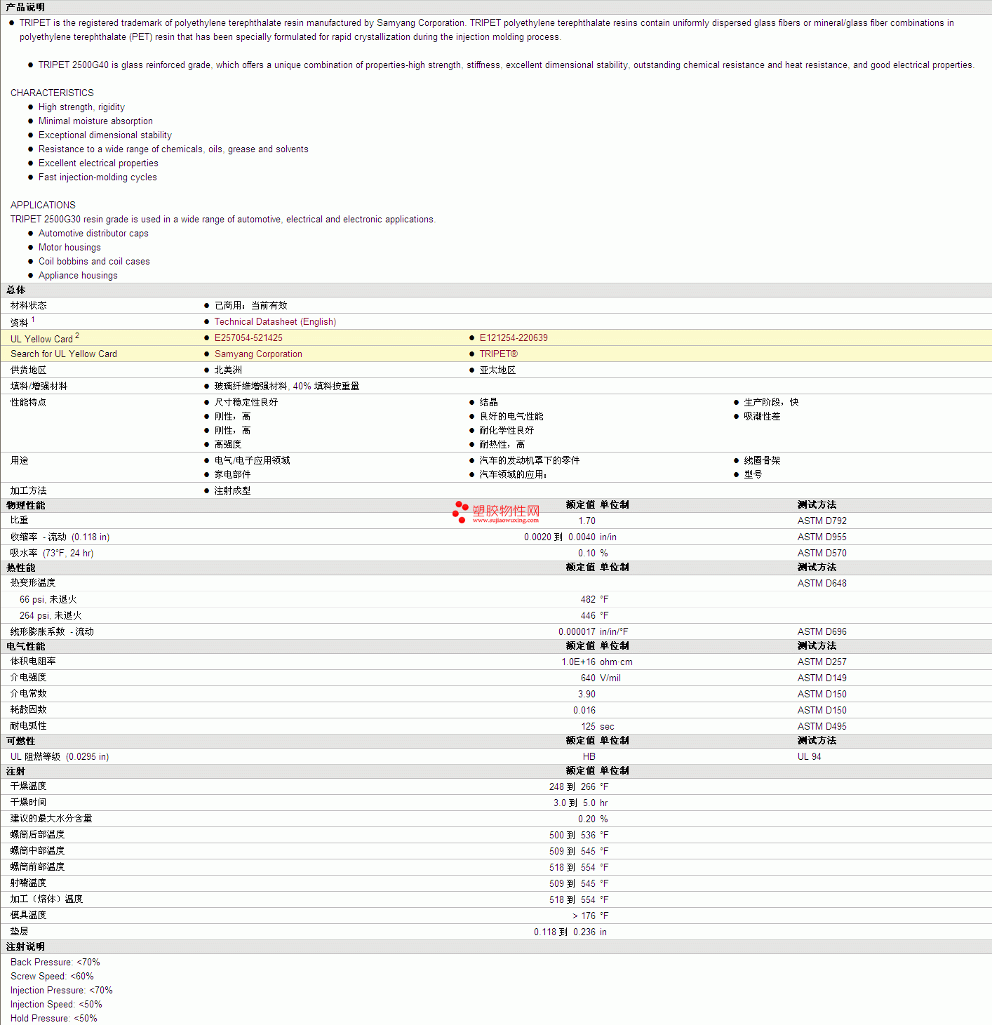 更多TRIPET PET 2500G40物性表报价,图片、材质证明、UL黄卡、物质安全资料表(MSDS)等,最新行情报价等可来电咨询赵先生:13424755533。或QQ:27660005