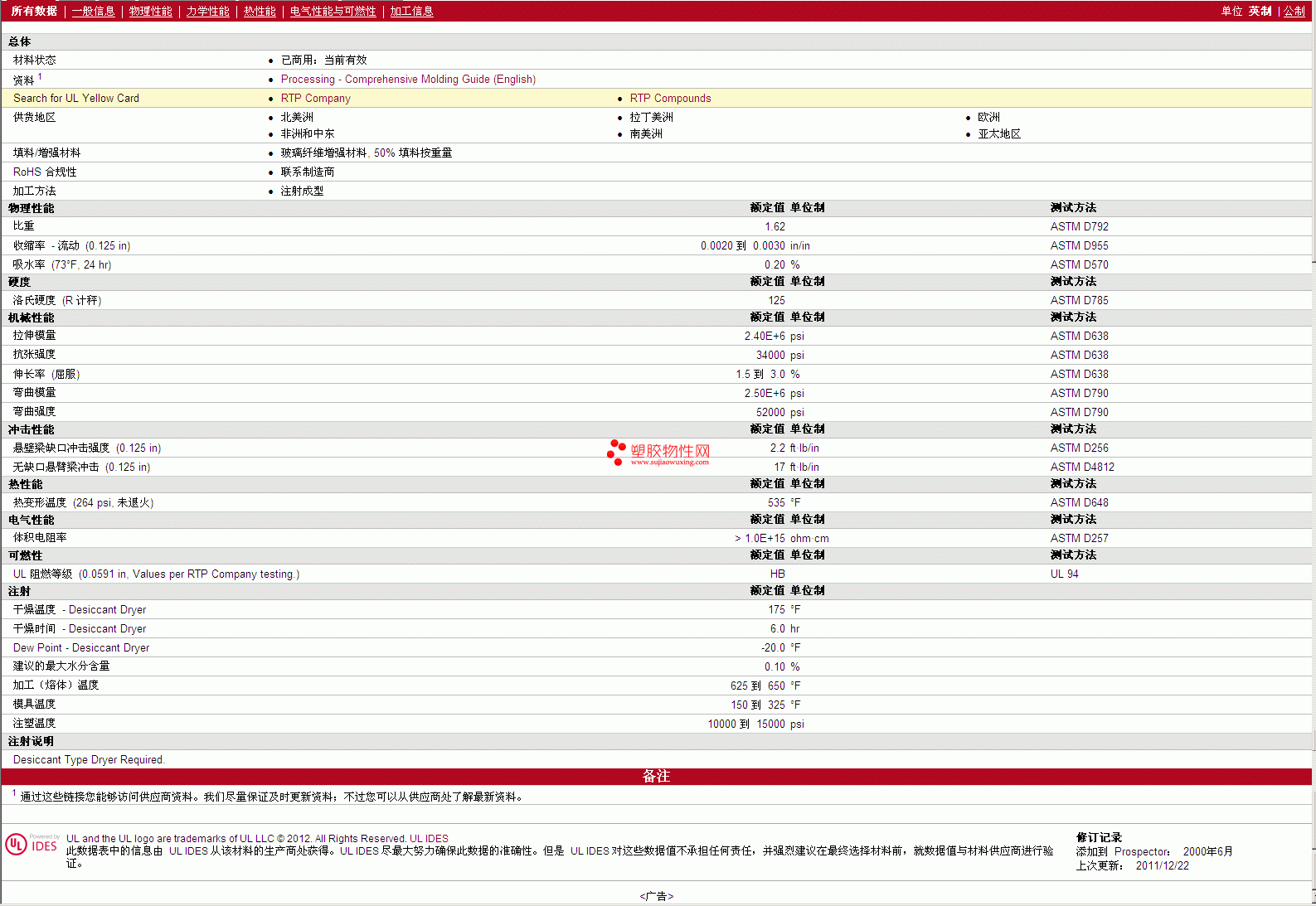如需了解RTP Compounds PPA 4009 A 物性表更多详情,ROHS(SGS)报告、物质安全资料表(MSDS)、材质证明、UL黄卡等,最新行情报价等可来电咨询:赵先生:13424755533或QQ: 27660005