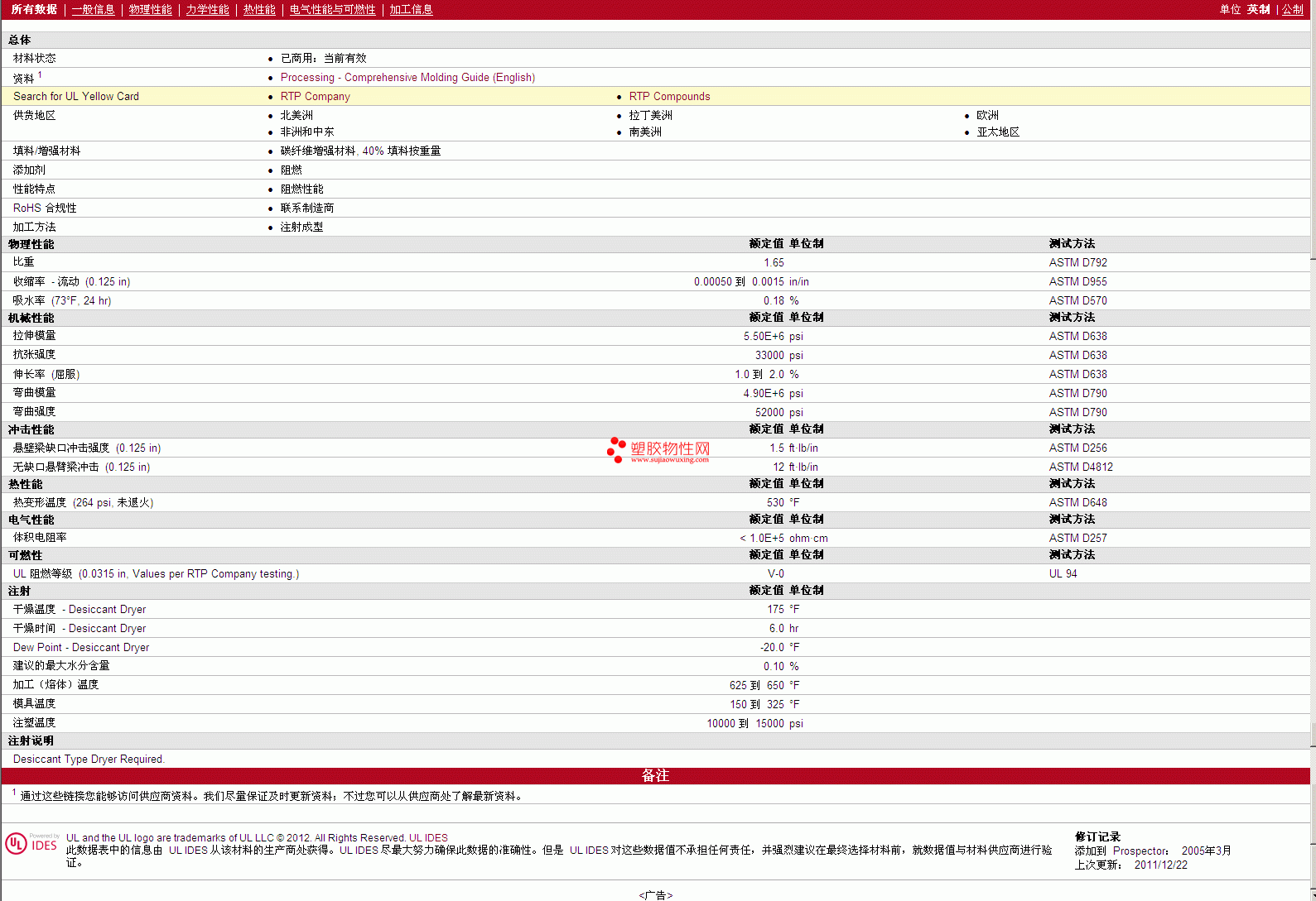 如需了解RTP Compounds PPA 4087 A FR 物性表更多详情,ROHS(SGS)报告、物质安全资料表(MSDS)、材质证明、UL黄卡等,最新行情报价等可来电咨询:赵先生:13424755533或QQ: 27660005