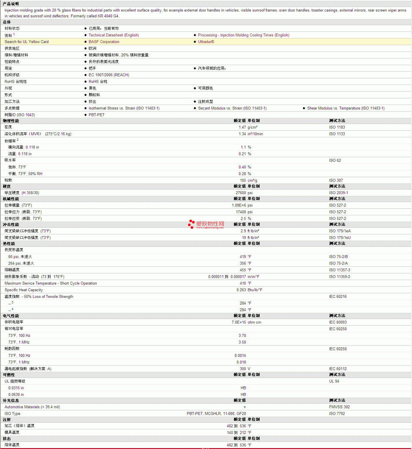 Ultradur PET B 4040 G4 物性表 详细情况如图