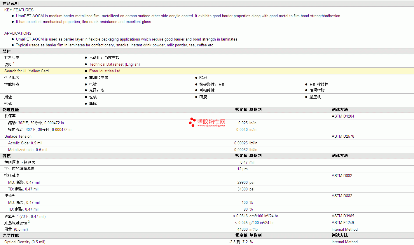 | 物理性能 | 额定值 | 单位制 | 测试方法 |