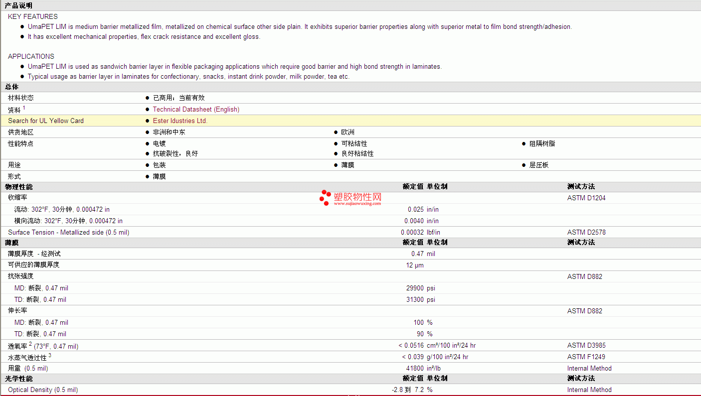 | 薄膜 | 额定值 | 单位制 | 测试方法 |
