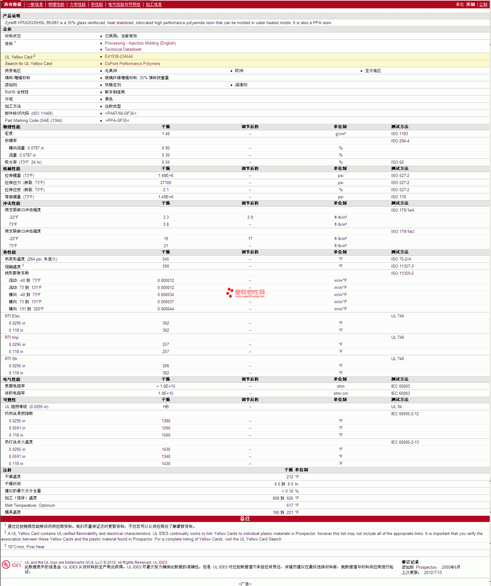更多Zytel PPA HTN 52G35HSL BK083 物性表报价,图片、材质证明、UL黄卡、物质安全资料表(MSDS)等可来电咨询赵先生:13424755533或QQ: 27660005