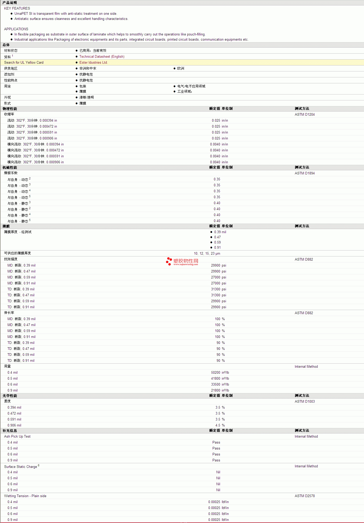 | 物理性能 | 额定值 | 单位制 | 测试方法 |