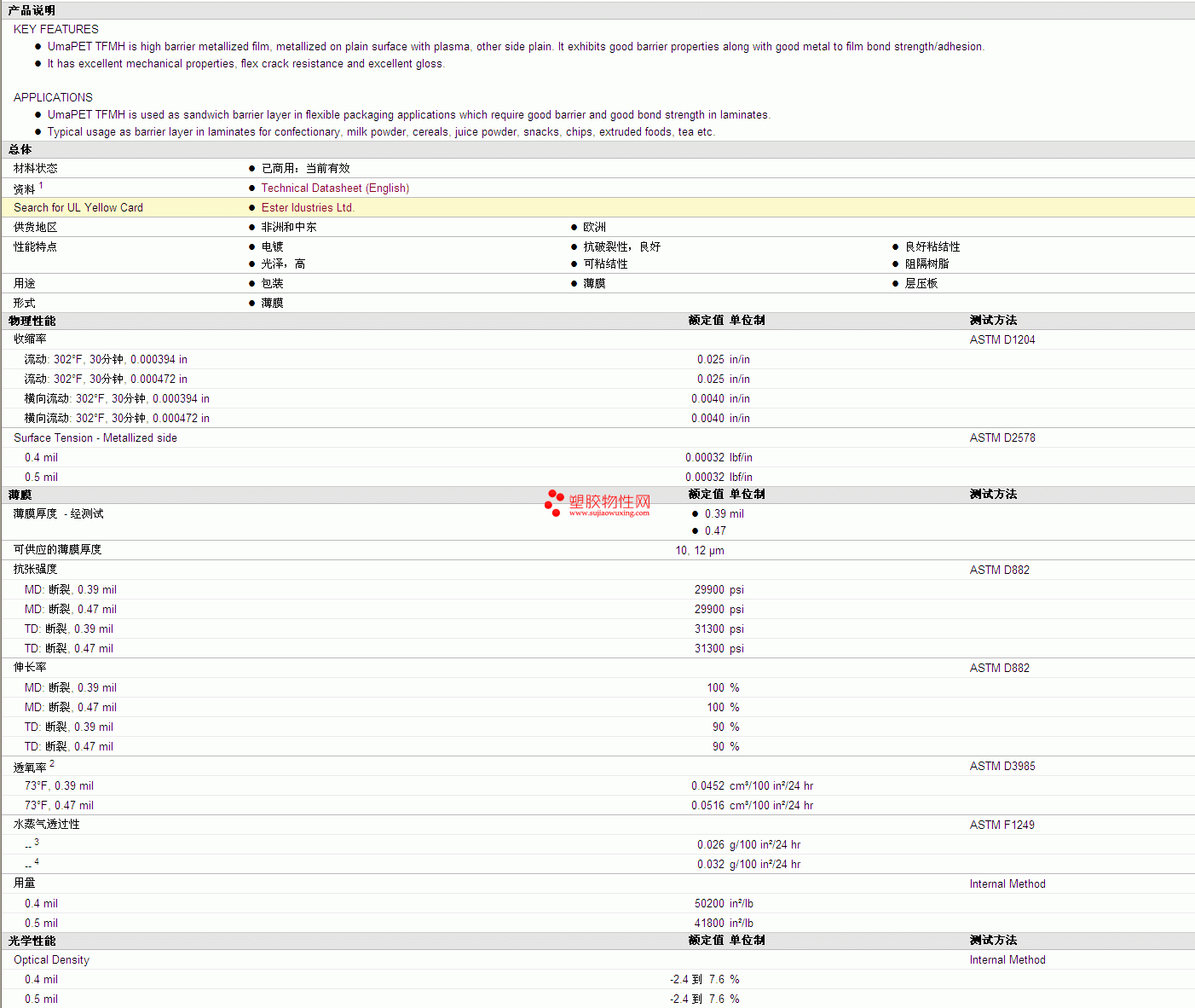 | 物理性能 | 额定值 | 单位制 | 测试方法 |