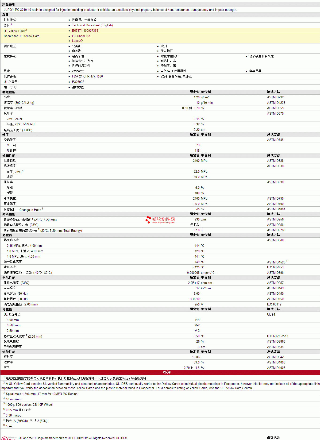 Lupoy PC 3010-10物性表 见图片