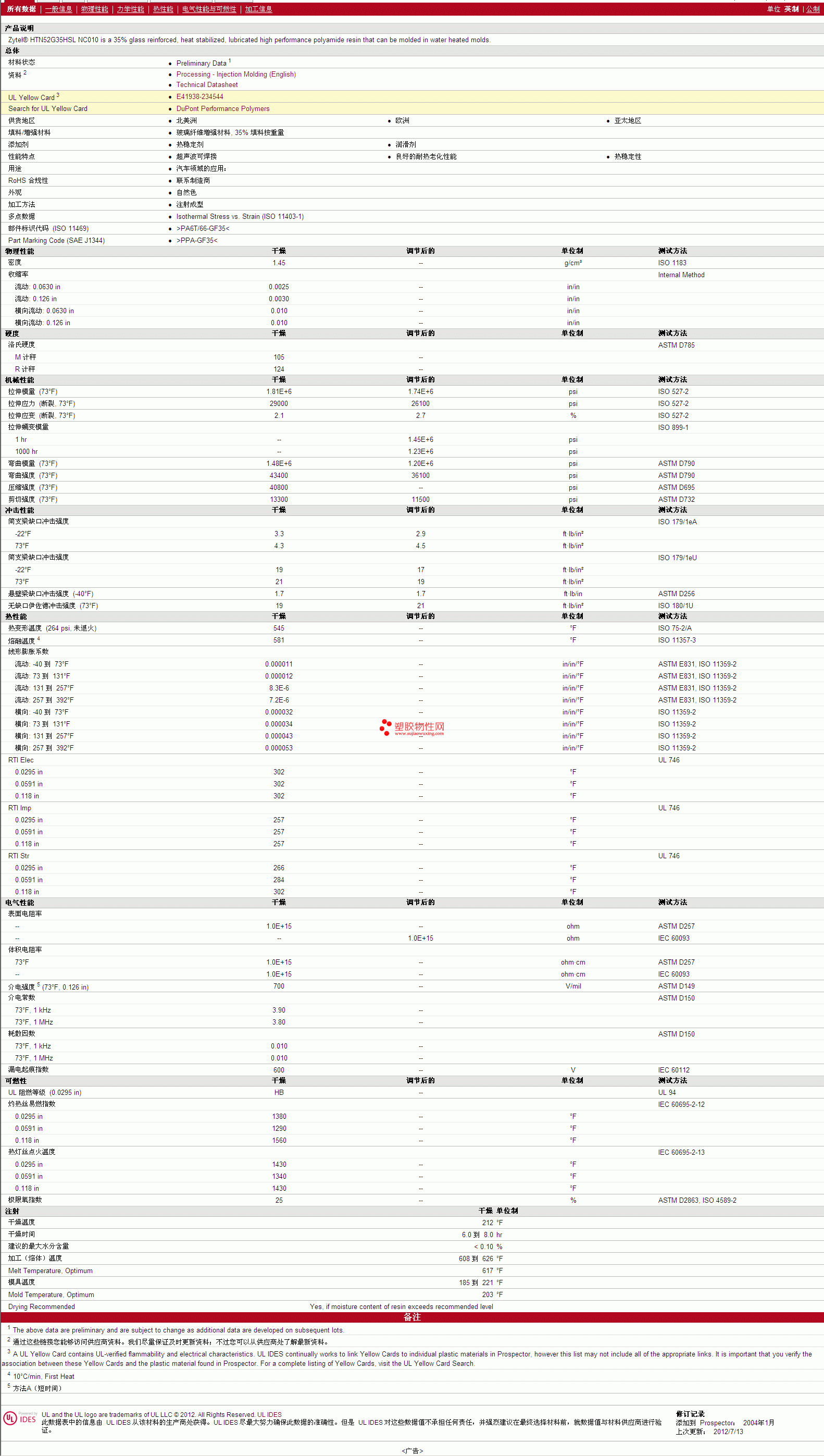 需了解Zytel PPA HTN 52G35HSL NC010 物性表更多详情,材质证明、ROHS(SGS)报告、物质安全资料表(MSDS)、UL黄卡等,最新行情报价等可来电咨询:赵先生:13424755533或QQ: 27660005