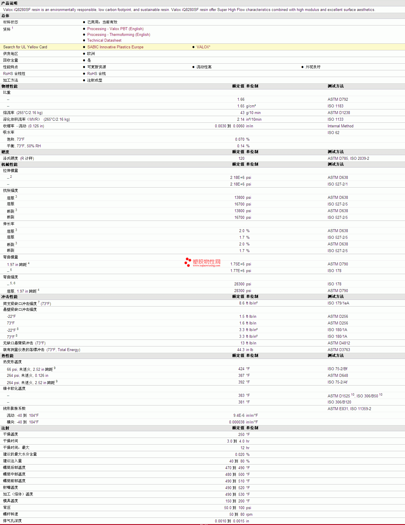VALOX PET IQ8280SF Resin 物性表 详情见附件