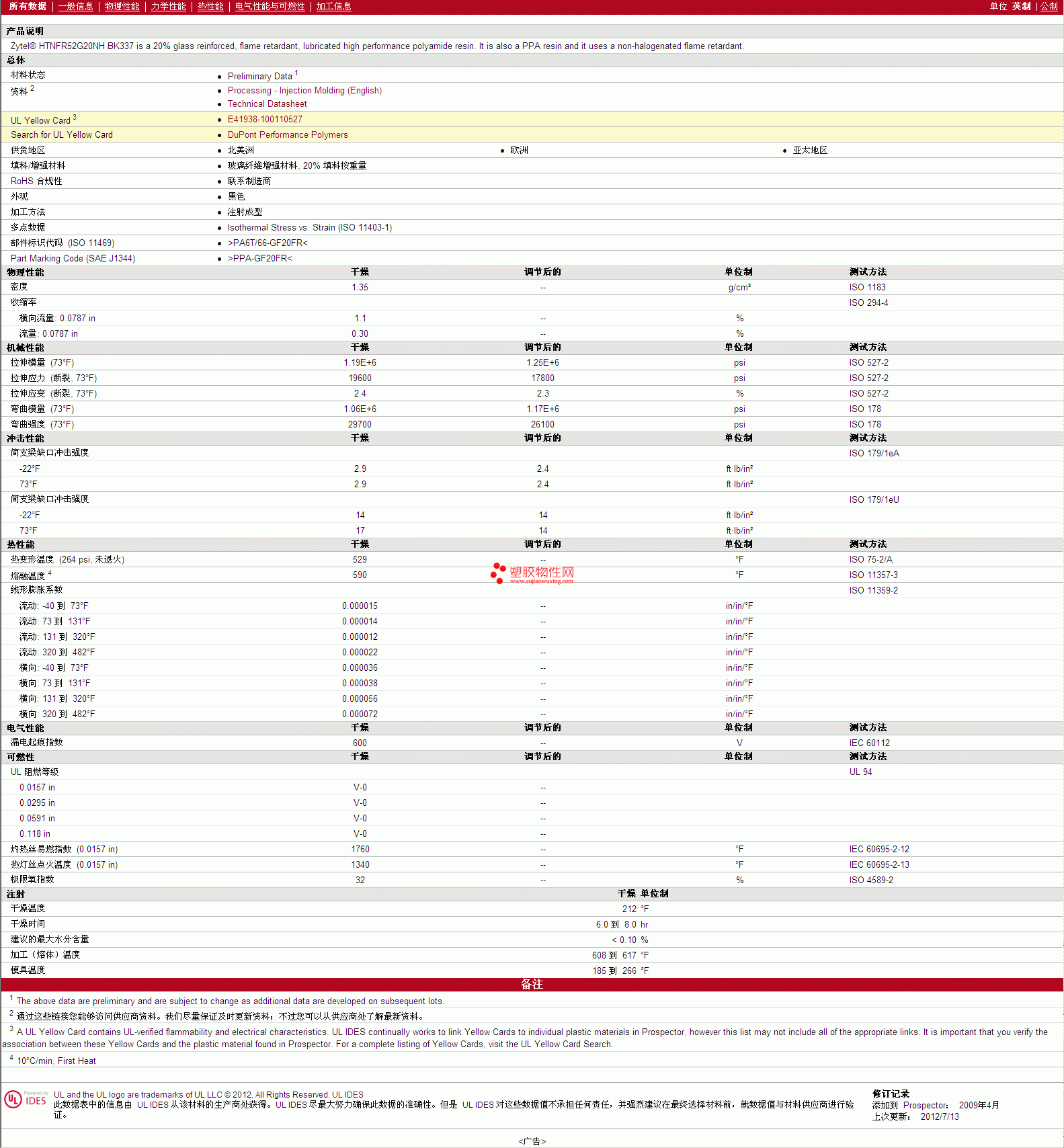 Zytel PPA HTN FR52G20NH BK337 物性表