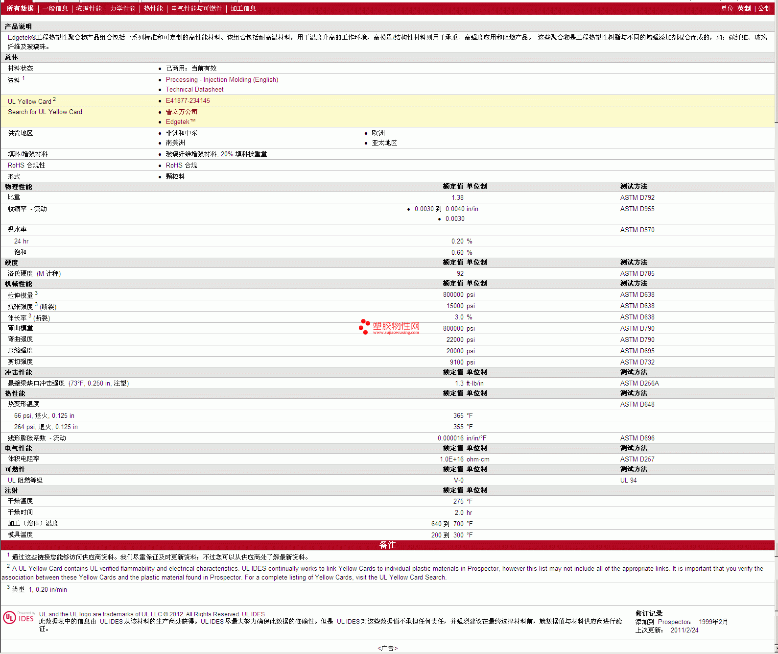 其他工程塑料物性表
