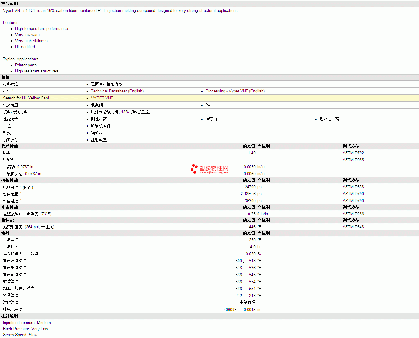 | 弯曲模量 3 | 2.18E+6 | psi | ASTM D790 |