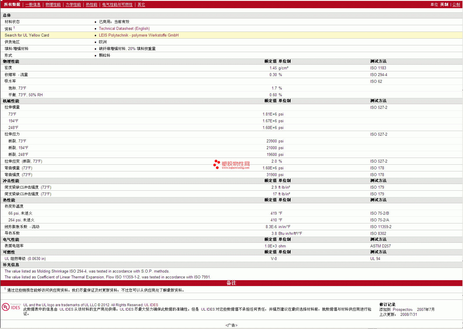 更多LEIS PES PSU CF20 物性表图片,报价、物质安全资料表(MSDS)、材质证明、UL黄卡等,最新行情报价等可来电咨询赵先生:13424755533或QQ: 27660005