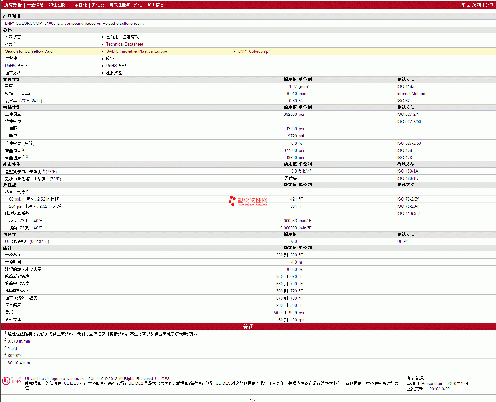 更多LNP Colorcomp PSU J1000 物性表报价,图片、材质证明、UL黄卡、物质安全资料表(MSDS)等可来电咨询赵先生:13424755533或QQ: 27660005