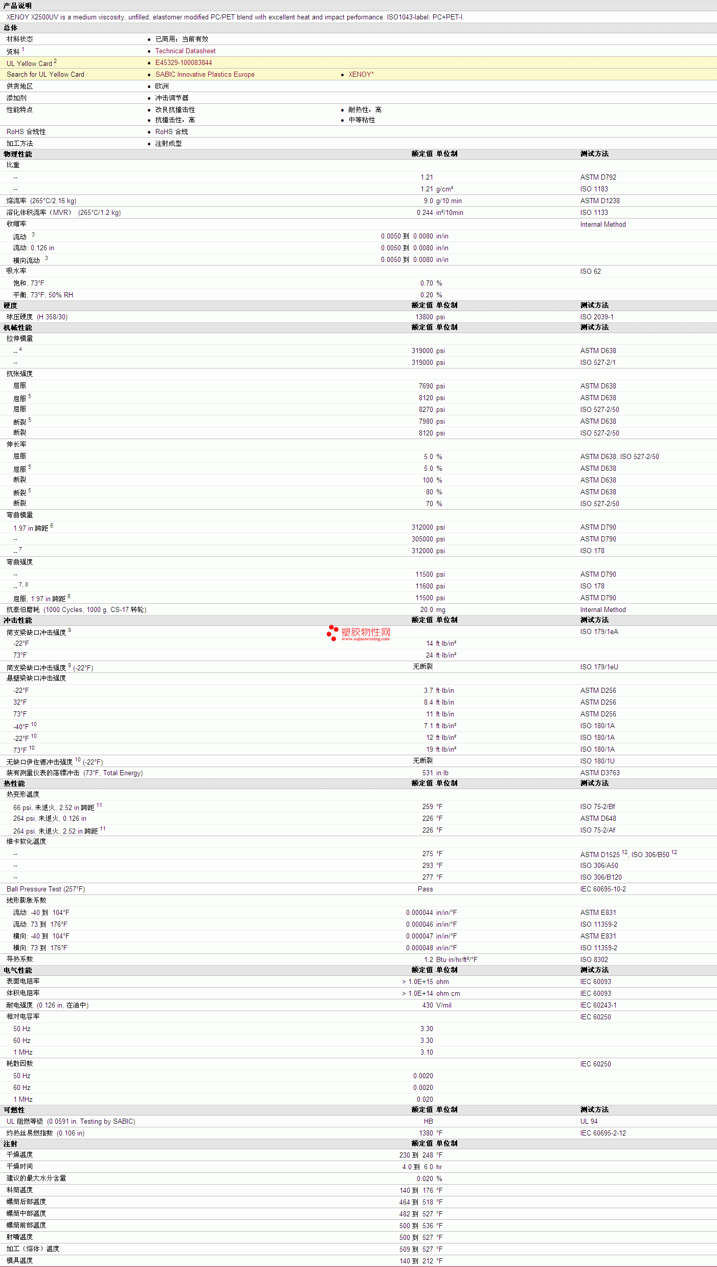| 溶化体积流率(MVR) (265°C/1.2 kg) | 0.244 | in³/10min | ISO 1133 |